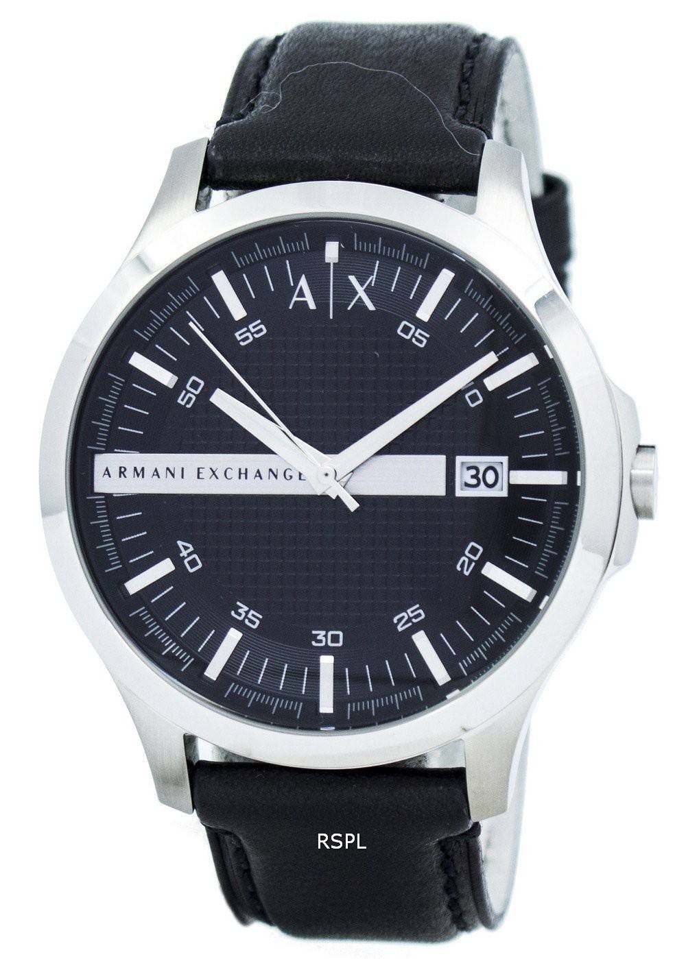 Armani Exchange sort urskive læder rem AX2101 Herreur