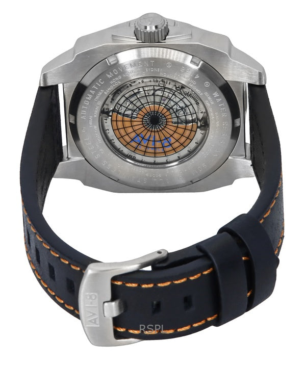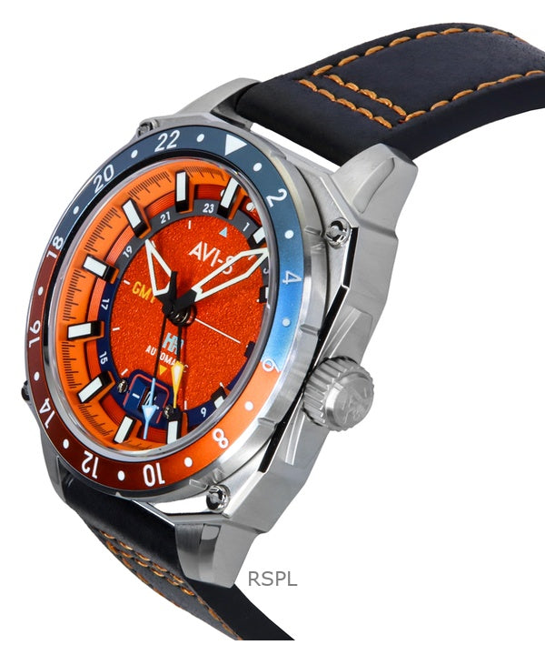 AVI-8 Hawker Hunter Atlas GMT Orange rød læderrem Orange Urskive Automatisk AV-4122-06 herreur