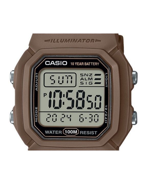 Casio Digital Brown Dual Time Resin Rem Quartz W-800H-5AV 100M herreur