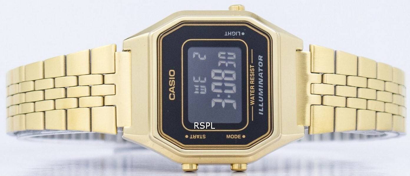 Casio Digital kvarts rustfrit stål Illuminator LA680WGA-1BDF LA680WGA-1B kvinders ur