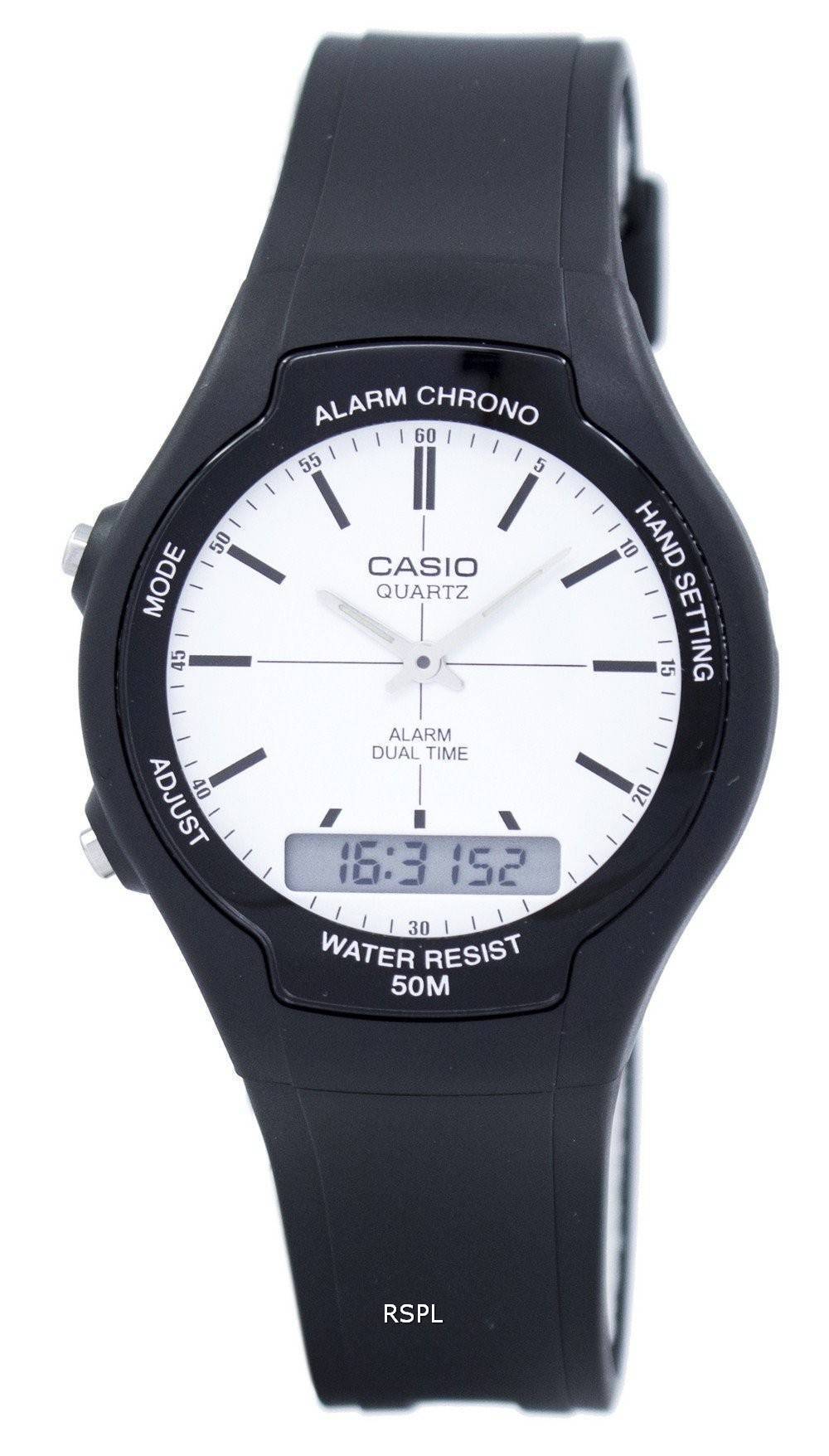 Casio Dual tid Alarm kvarts Analog Digital AW - 90H - 7EV AW90H - 7EV Herreur