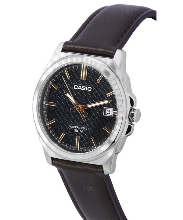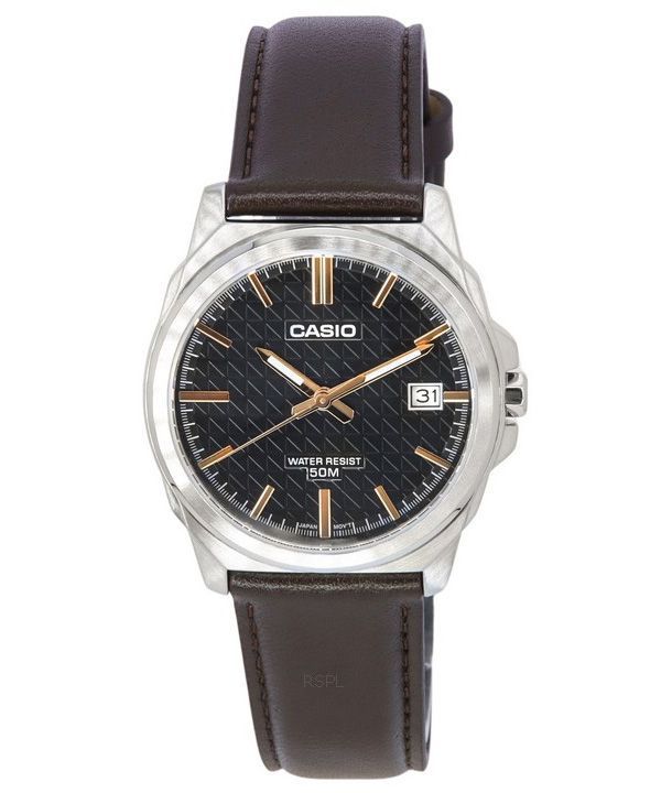 Casio Standard Analog Brun Læderrem Sort Urskive Quartz MTP-E720L-5A herreur