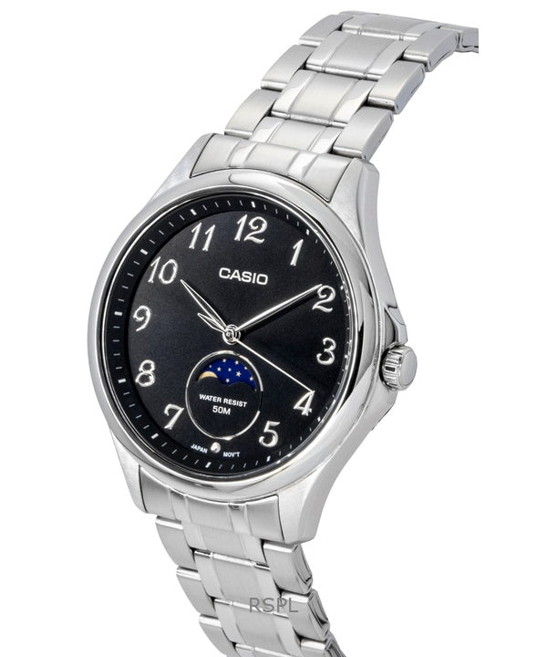 Casio Standard Analog Månefase Rustfrit Stål Sort Skive Quartz MTP-M110D-1AV Herreur