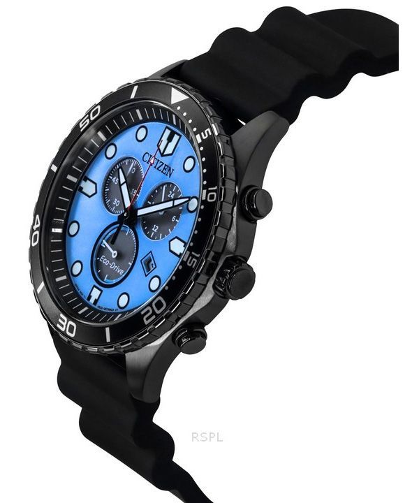 Citizen Eco-Drive Chronograph Polyurethan Rem Blue Dial AT2567-18L 100M herreur