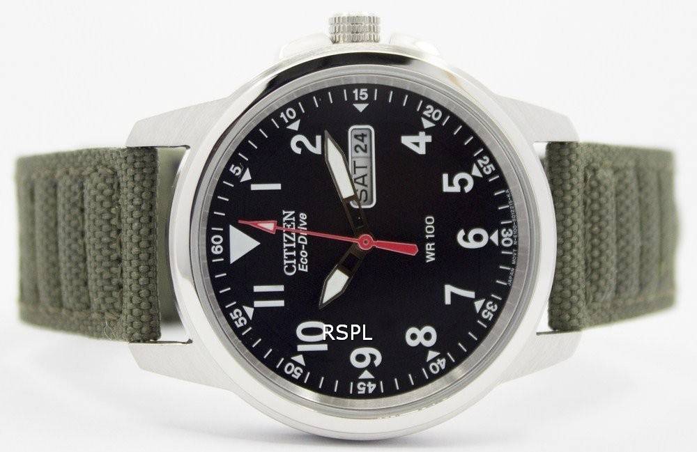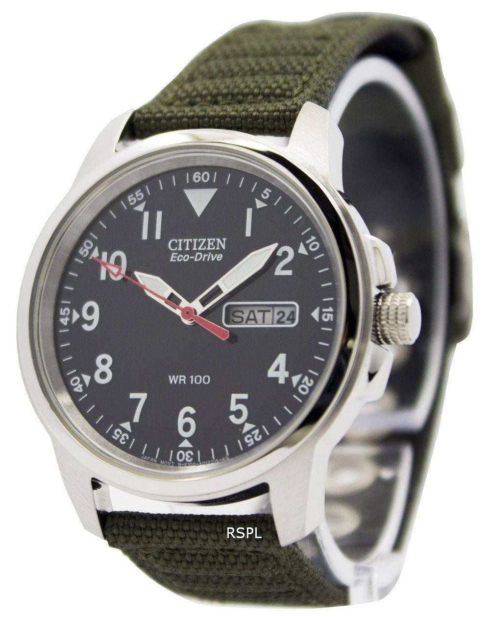 Citizen Eco-Drive grøn lærred bæltet 100M BM8180-03E Herreur