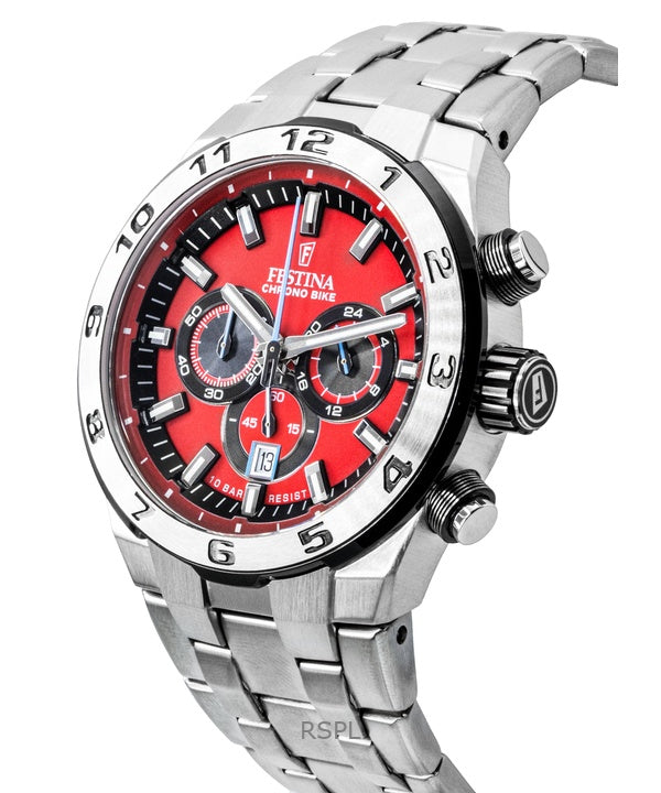 Festina Chrono Bike Chronograph Rustfrit Stål Rød Skive Quartz F20670-5 100M Herreur