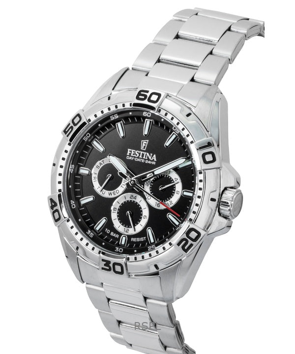 Festina Rustfrit Stål Multifunktions Sort Skive Quartz F20623-4 100M Herreur