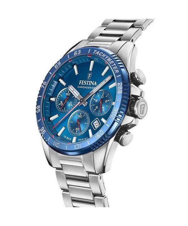 Festina tidløs kronograf rustfrit stål blå skive kvarts F20560-3 100M herreur