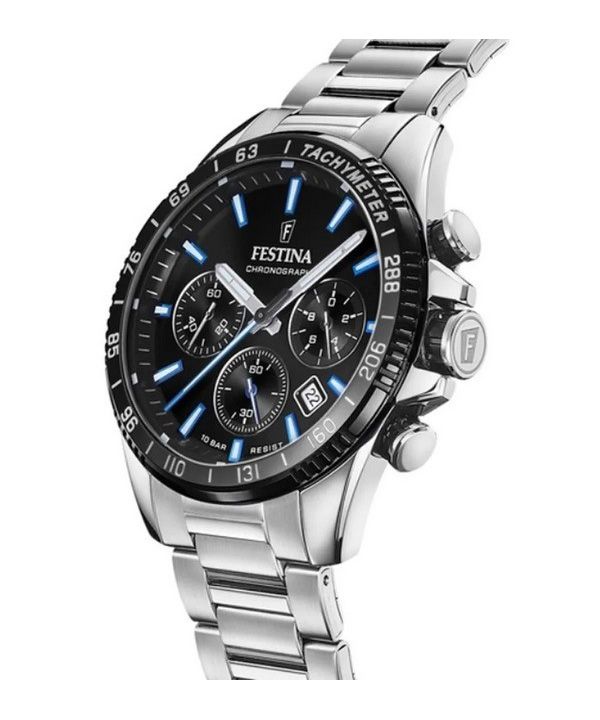 Festina tidløs kronograf rustfrit stål sort skive kvarts F20560-5 100M herreur