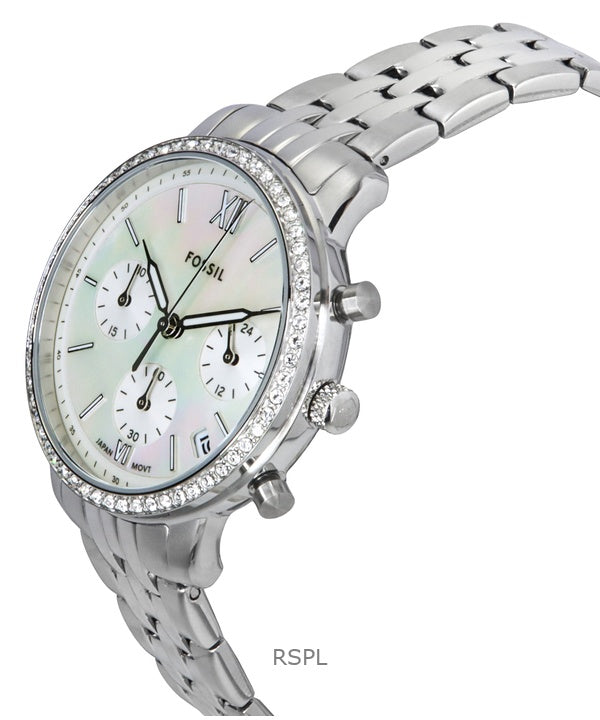 Fossil Neutra Chronograph Krystal Accenter Rustfrit Stål Hvid Perlemorskive Quartz ES5357 Dameur