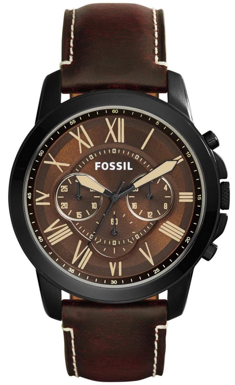 Fossile give Chronograph brun urskive brun læder FS5088 Herreur