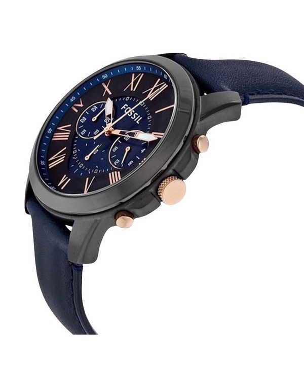 Fossile Grant Chronograph Black and Blue Dial blå læder FS5061 Herreur