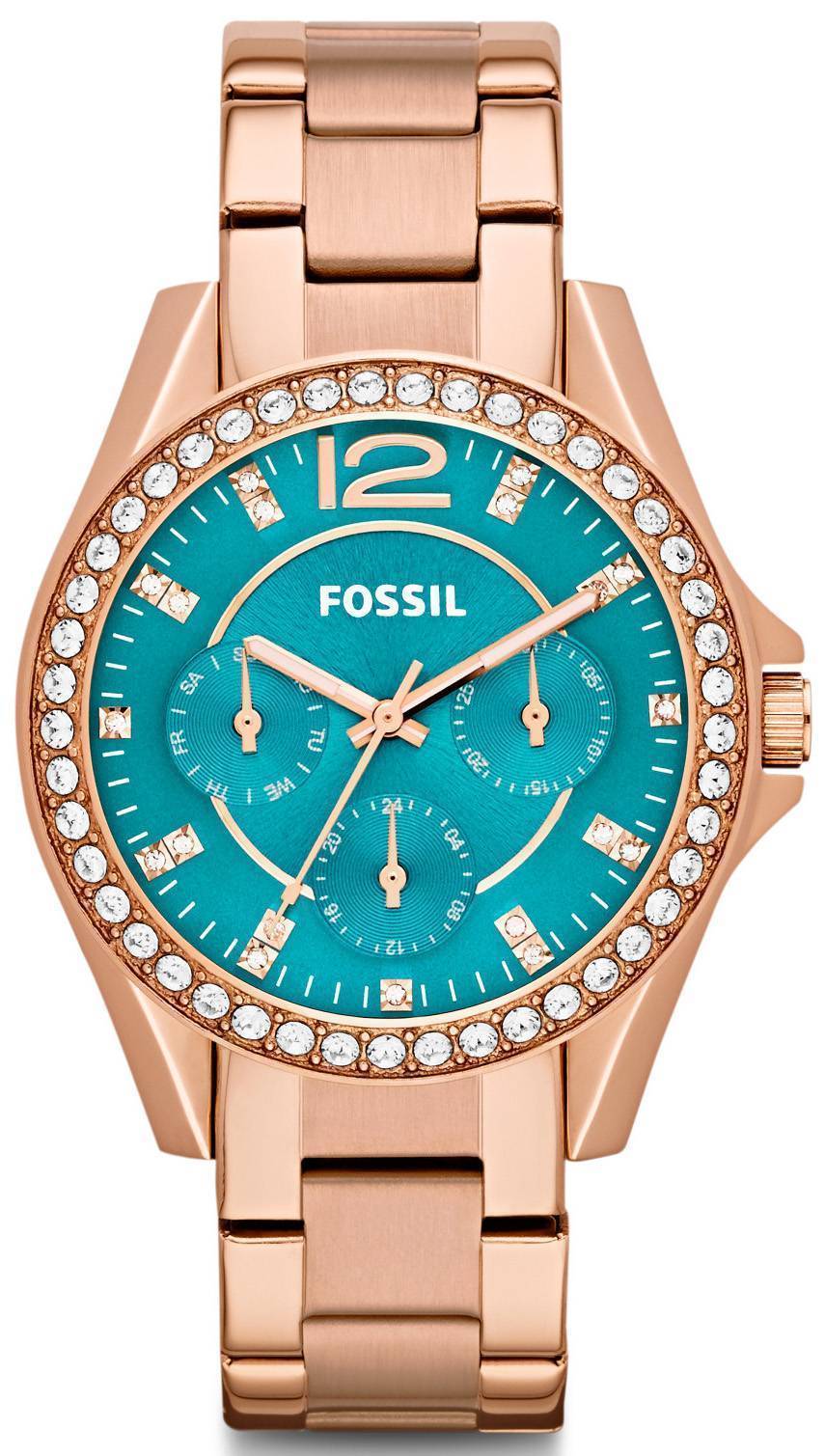 Fossile Riley multifunktions Rose guld-Tone turkis Dial ES3385 kvinders ur