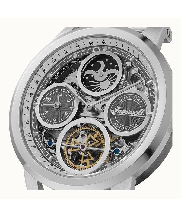 Ingersoll The Arc Moon Phase Rustfrit Stål Sølv Skeleton Dial Automatisk I16002 Herreur