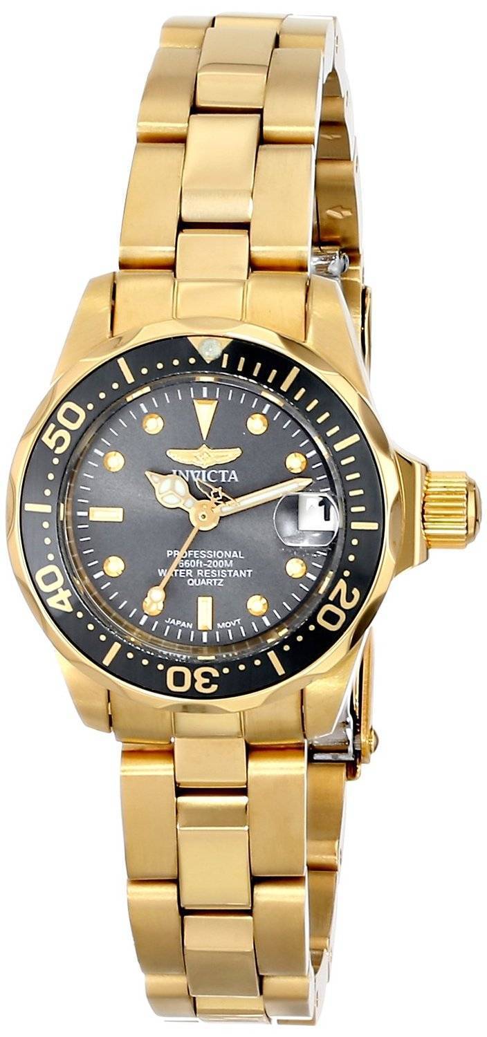 Invicta Pro Diver 200M kvarts guld IP sort urskive INV14986/14986 kvinders ur