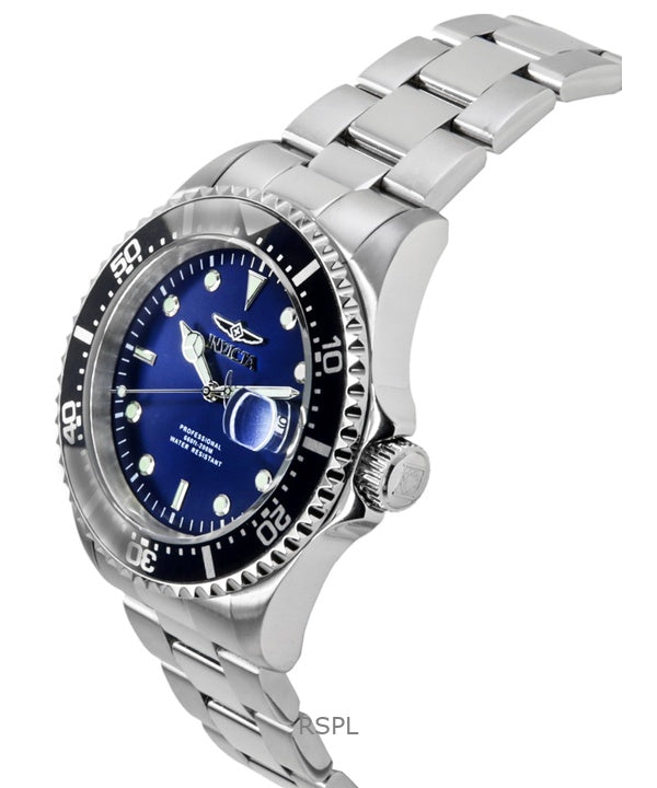 Invicta Pro Diver rustfrit stål blå urskive kvarts dykkerur 22054 200M herreur