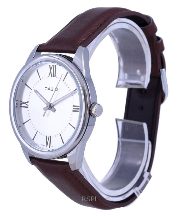 Renoveret Casio analog læderrem Silver Dial Quartz MTP-V005L-7B5 herreur