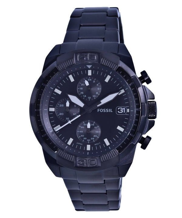 Renoveret Fossil Bronson Chronograph rustfrit stål Black Dial Quartz FS5853 herreur