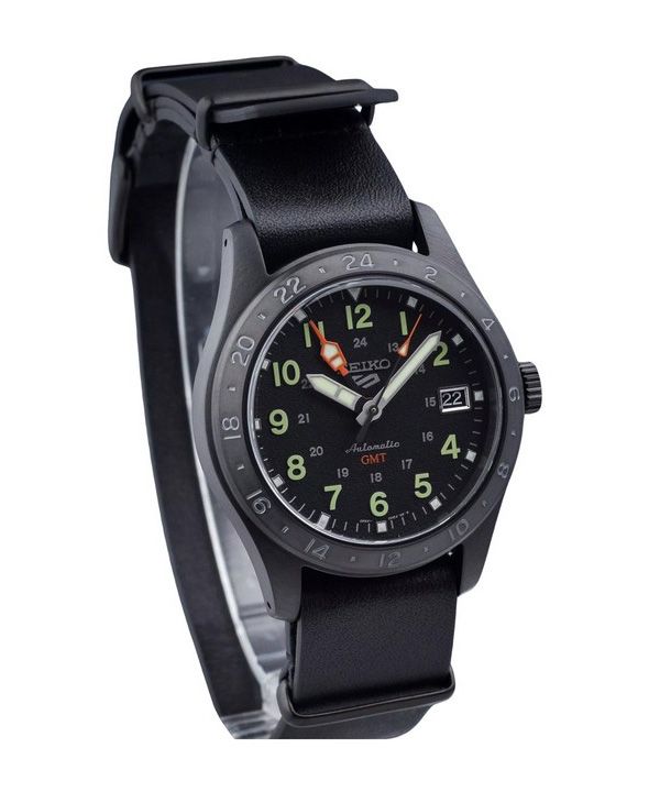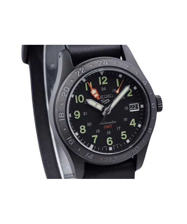 Seiko 5 Sports GMT Field Series Læderrem Sort Urskive Automatisk SSK025K1 100M herreur