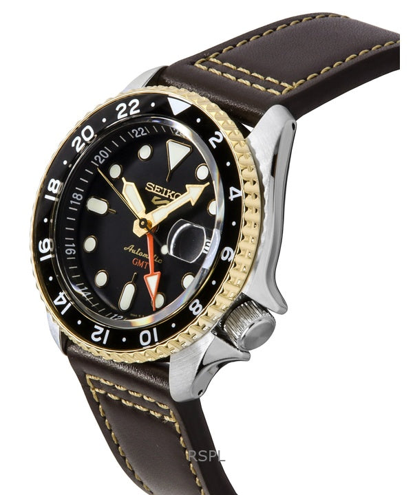 Seiko 5 Sports SKX GMT Læderrem Brun Urskive Automatisk SSK036K1 100M herreur