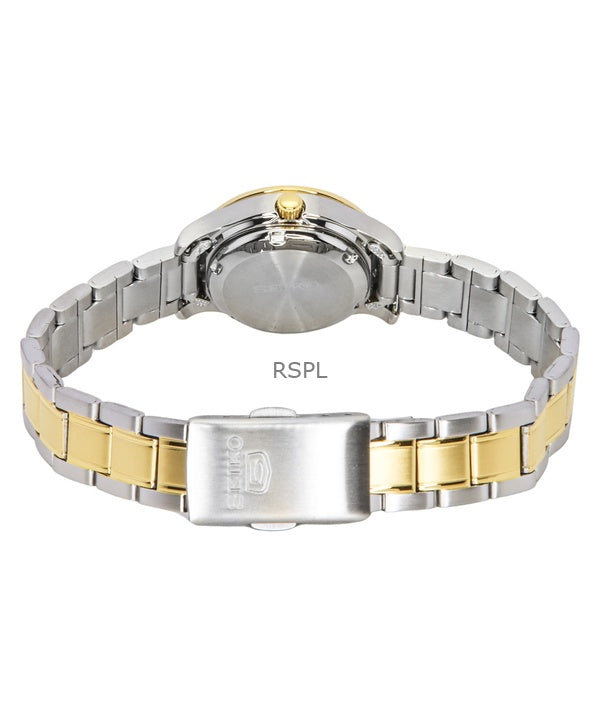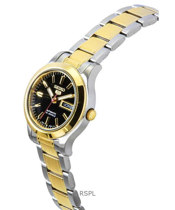 Seiko 5 tofarvet rustfrit stål sort urskive 21 juveler automatisk SYMD94K1 dameur