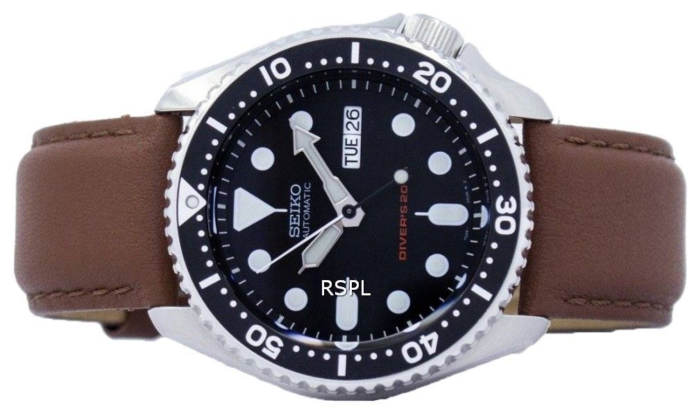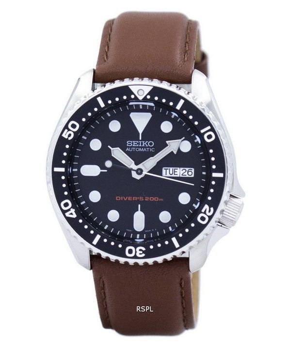 Seiko automatiske dykkerens 200M forholdet brun læder SKX007K1-LS12 Herreur