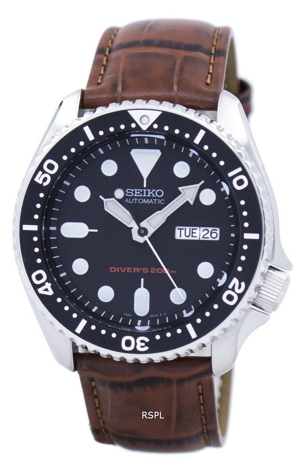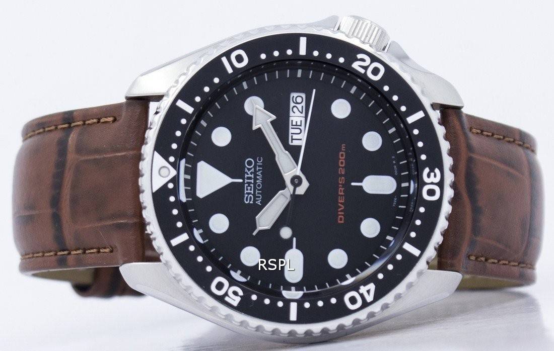 Seiko automatiske dykkerens 200M forholdet brun læder SKX007K1-LS7 Herreur