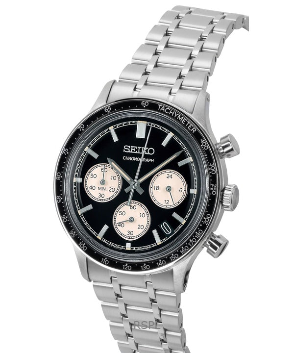 Seiko kronograf rustfrit stål sort urskive kvarts SSB479P1 herreur