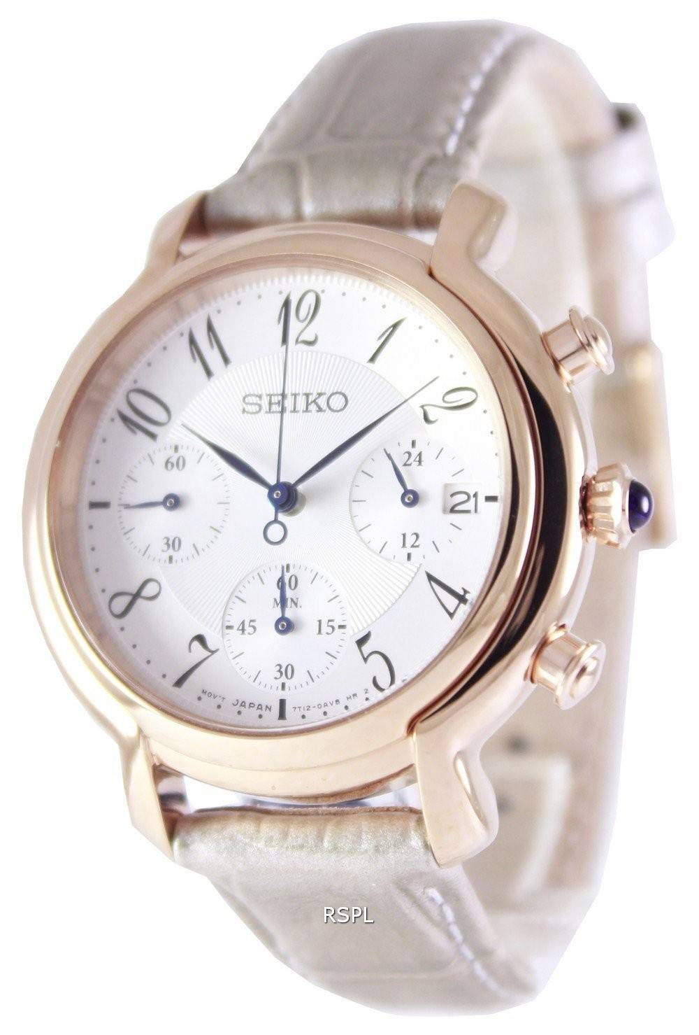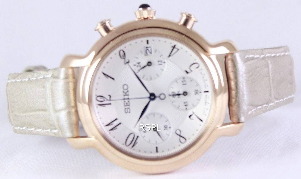 Seiko Quartz Chronograph kalveskind rem SRW872P1 SRW872P kvinders ur