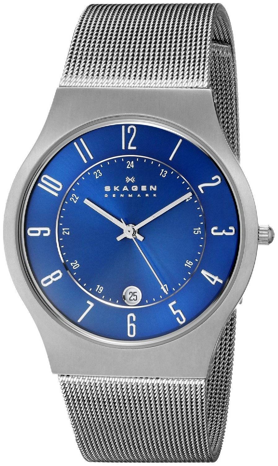 Skagen blå urskive Titanium Case Mesh armbånd 233XLTTN Herreur