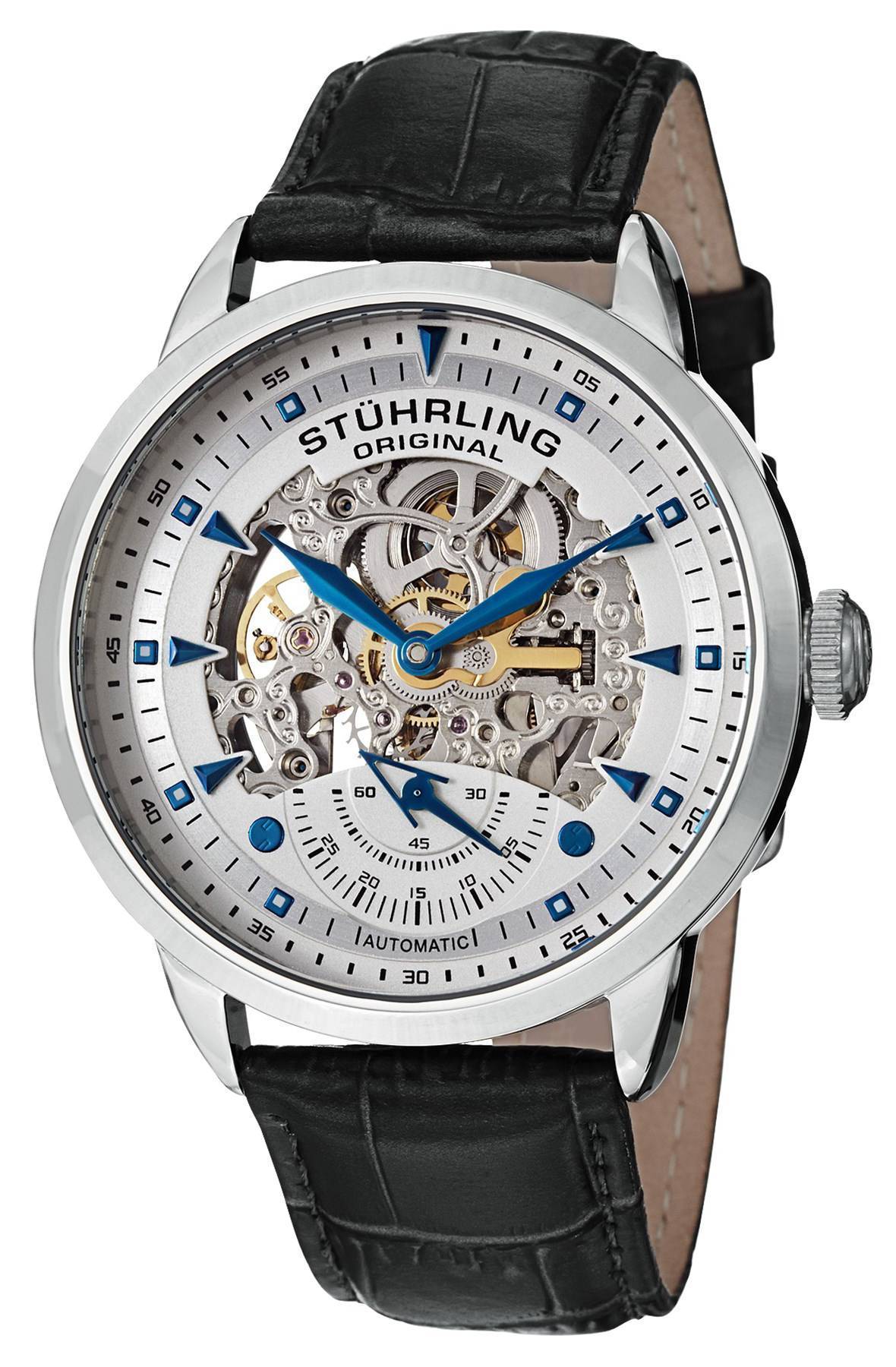 Stuhrling Original Executive automatisk skelet sort ægte læder 133.33152 Herreur