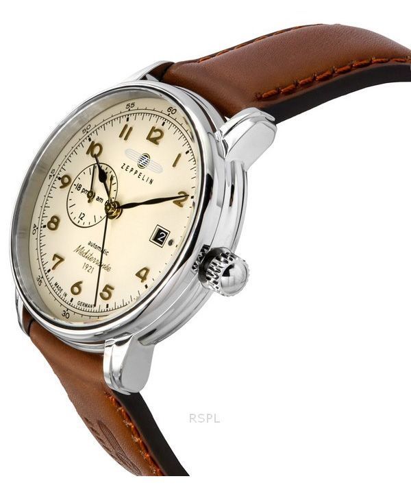 Zeppelin Mediterranean Læderrem Beige Urskive Automatisk 96685 herreur
