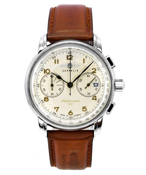 Zeppelin Mediterranee Chronograph Læderrem Beige Urskive Quartz 96705 Herreur